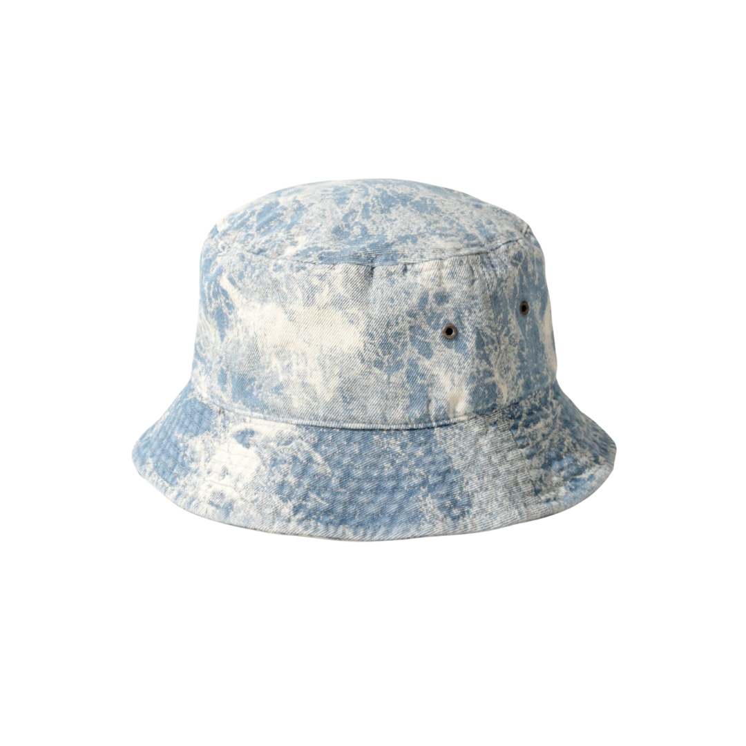 Sombreros - Sombrero de pescador: Sombrero de pescador de mezclilla con teñido anudado y blanqueado - Azul
