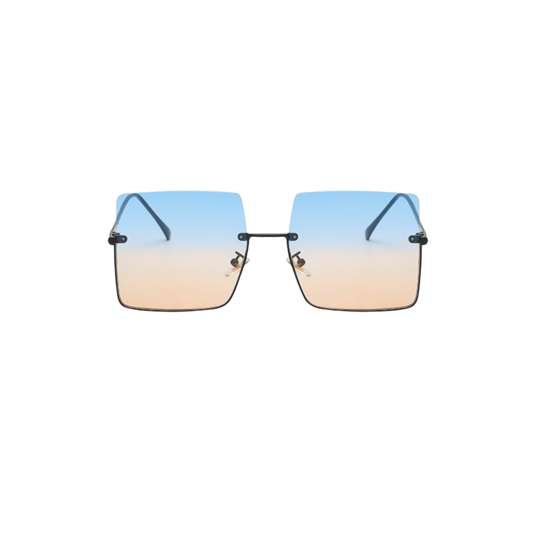 Sunglasses: Liv - Semi-Rimless Square Sunglasses - Black/Blue Orange