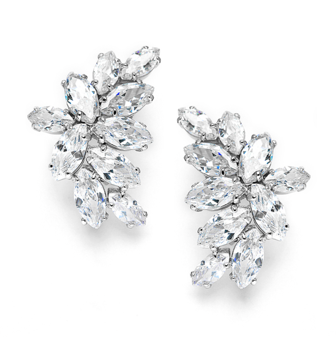 Earrings - Clusters: Crystal Cluster Omega Clasp - Silver