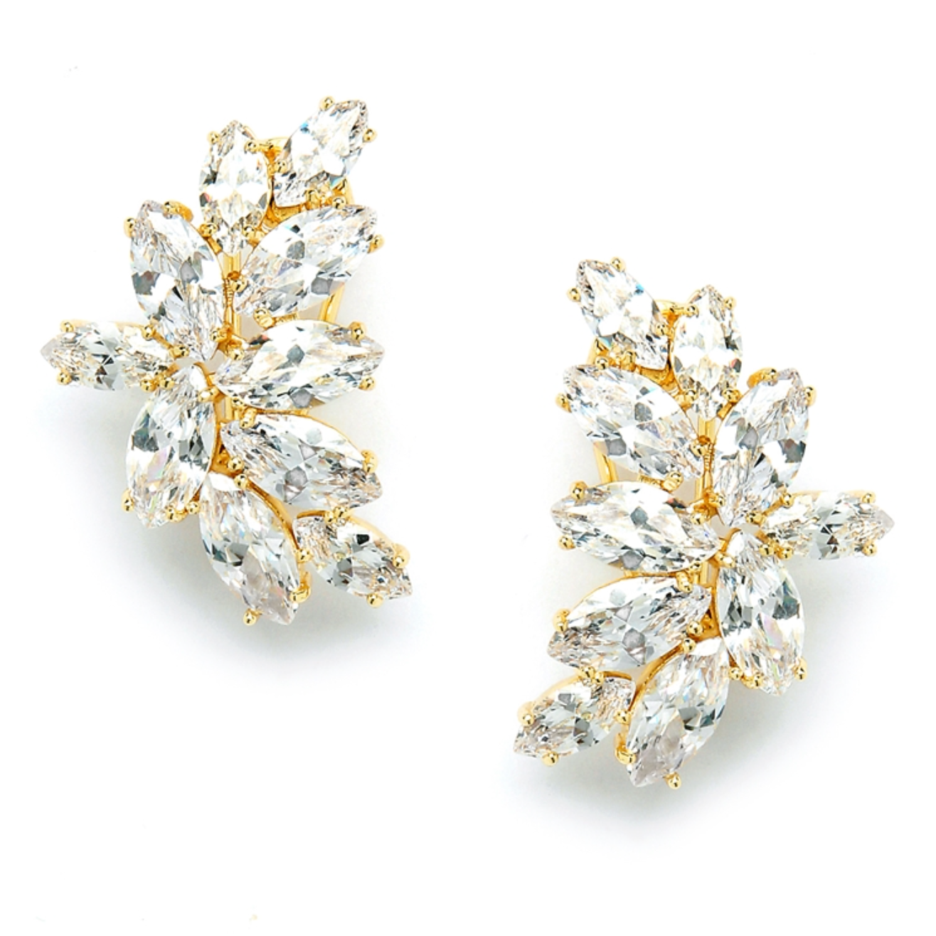 Earrings - Clusters: Crystal Cluster Omega Clasp - Gold